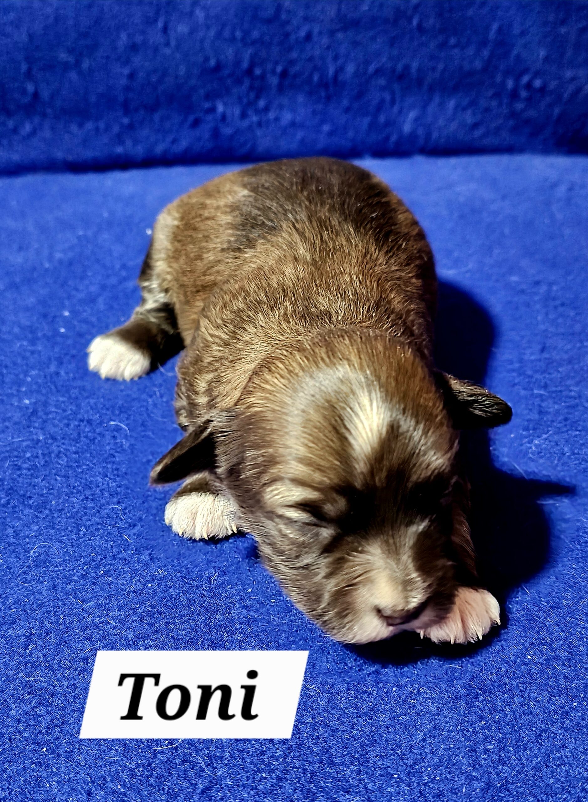 Toni is the darkest chocolate of the females. She has white feet and a little white star on her forehead with a white tip on her tail. Price is $900